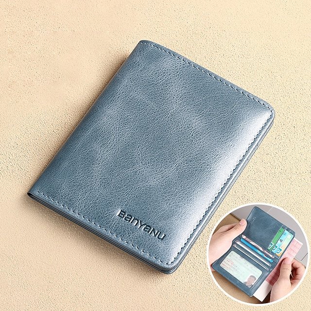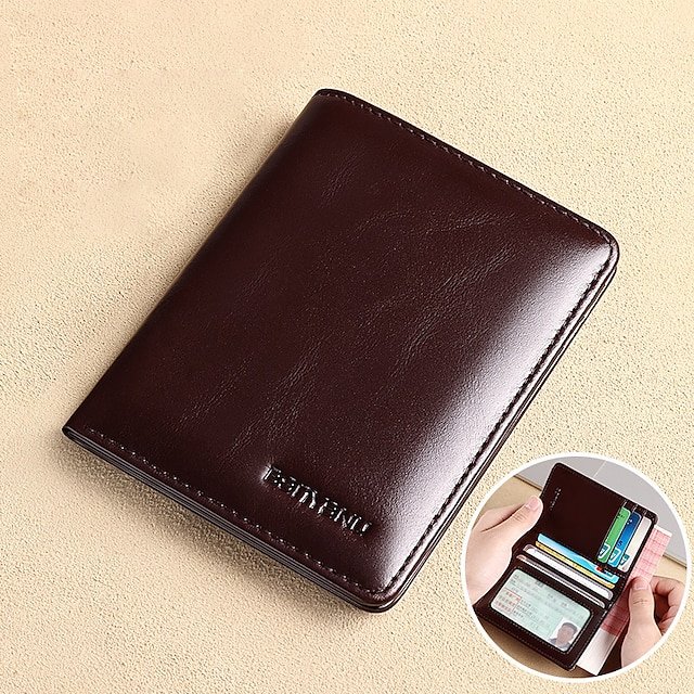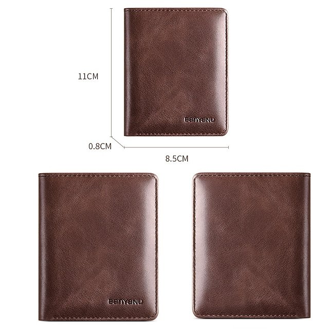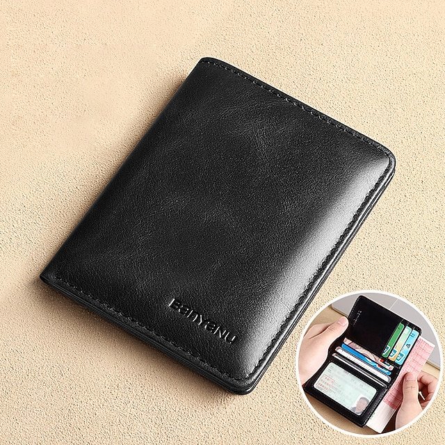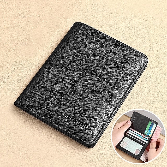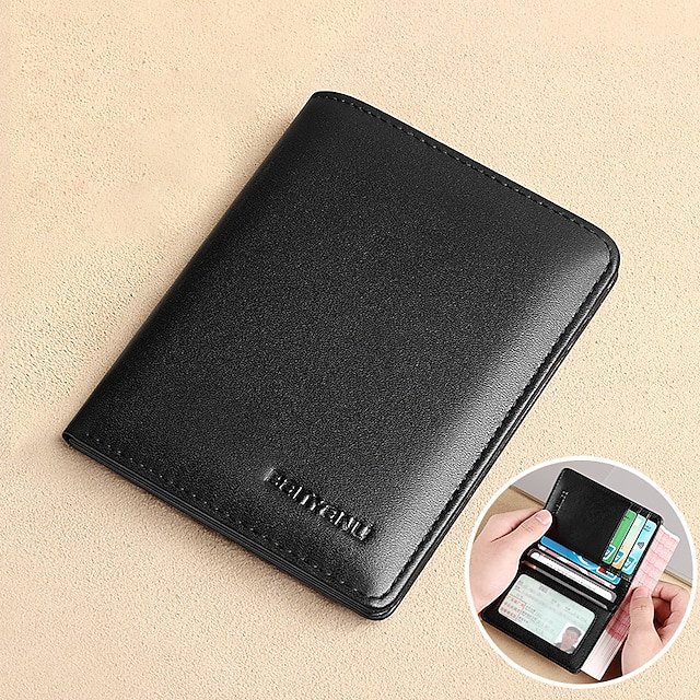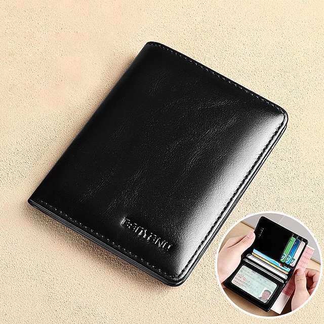 Gender: Men’s, Type: Credit Card Holder Wallet, Material: Leather, Pattern: Solid Color, Occasion: Shopping, Holiday, Daily, Outdoor, Width (cm): 0.8, Length (cm): 8.5, Height (cm): 11, Function: Waterproof, Lightweight, Large Capacity, Durable, RFID Blocking, Category: Wallet,