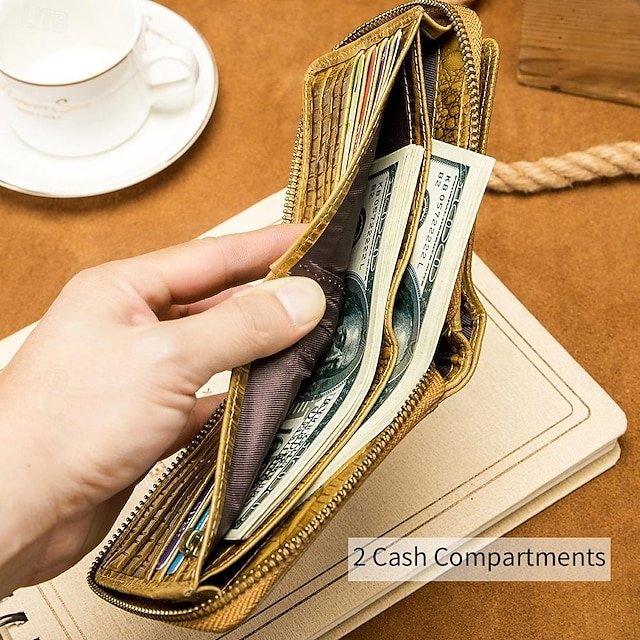 Men’s Vintage Faux Leather Wallet – Bifold with Zipper,