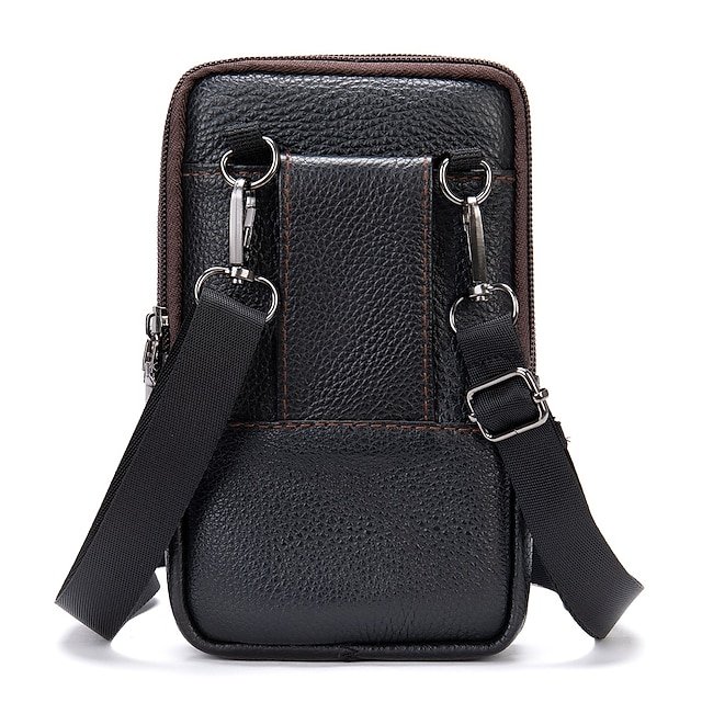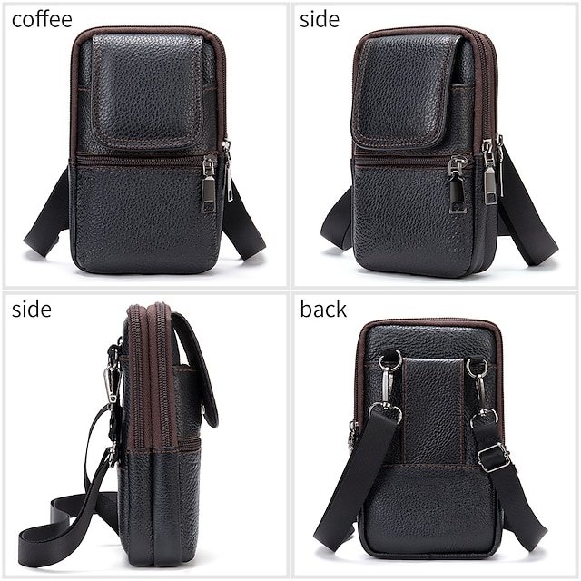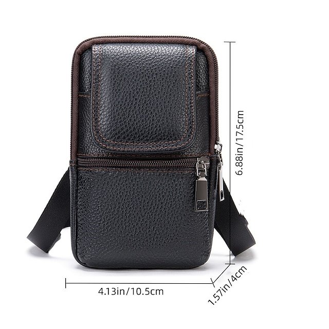 Gender: Men’s, Type: Mobile Phone Bag, Material: Cowhide, Embellishment: Zipper, Pattern: Solid Color, Occasion: Daily, Office, Width (cm): 4, Height (cm): 17.5, Length (cm): 10.5, Function: Lightweight, Adjustable, Durable, Multi Carry, Category: Crossbody Bag, Shoulder Bag,