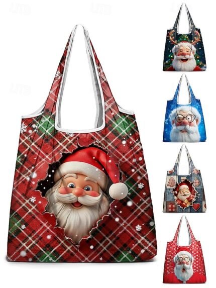 Women’s Christmas Foldable Shopping Bag – Multiple Santa