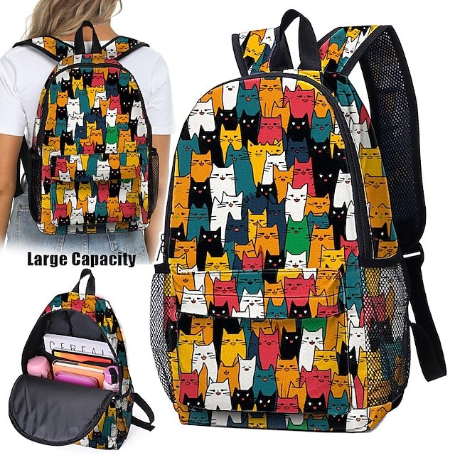 Gender: Women’s, Type: School Bag Bookbag, Commuter Backpack, 3D Print, Material: Polyester, Embellishment: Zipper, Print, Pattern: Cat, Occasion: Daily, School, Width (cm): 32, Height (cm): 42, Function: Lightweight, Large Capacity, Durable, Category: Backpack,