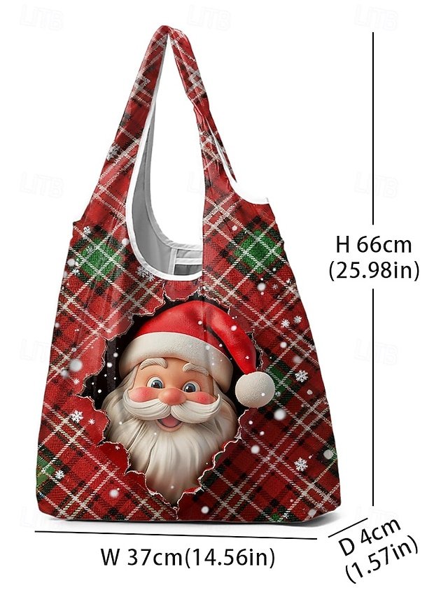 Gender: Women’s, Type: Hobo Bag, Shoulder Bags, Material: Polyester, Embellishment: Print, Pattern: Santa Claus, Detachable strap: Non-Detachable, Adjustable strap: Non-Adjustable, Occasion: Shopping, Christmas, Casual Daily, Width (cm): 4, Height (cm): 66, Length (cm): 37, Function: Lightweight, Foldable, Large Capacity, Category: Handbag, Tote,