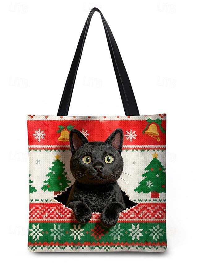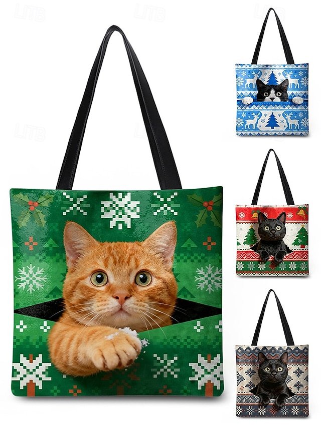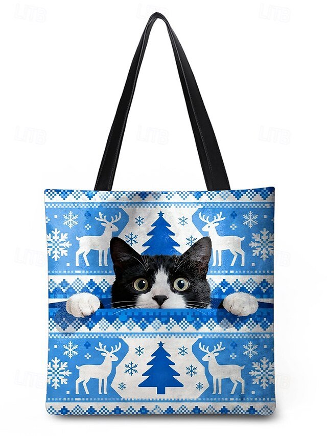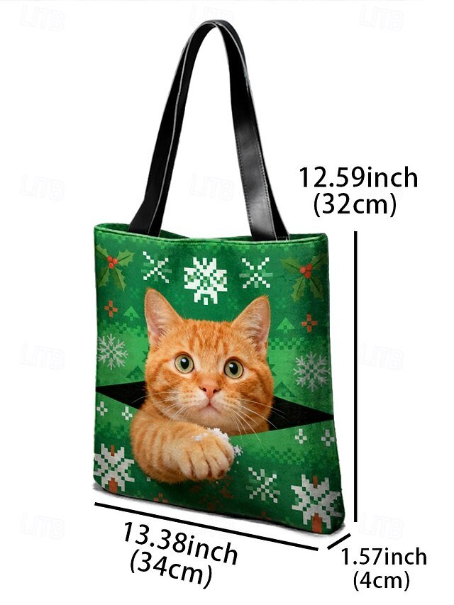 Gender: Women’s, Type: Shoulder Bags, Material: Polyester, Embellishment: Print, Pattern: Snowflakes, Cat, Occasion: Casual Daily, Christmas, Shopping, Width (cm): 4, Height (cm): 32, Length (cm): 34, Function: Lightweight, Large Capacity, Category: Tote,