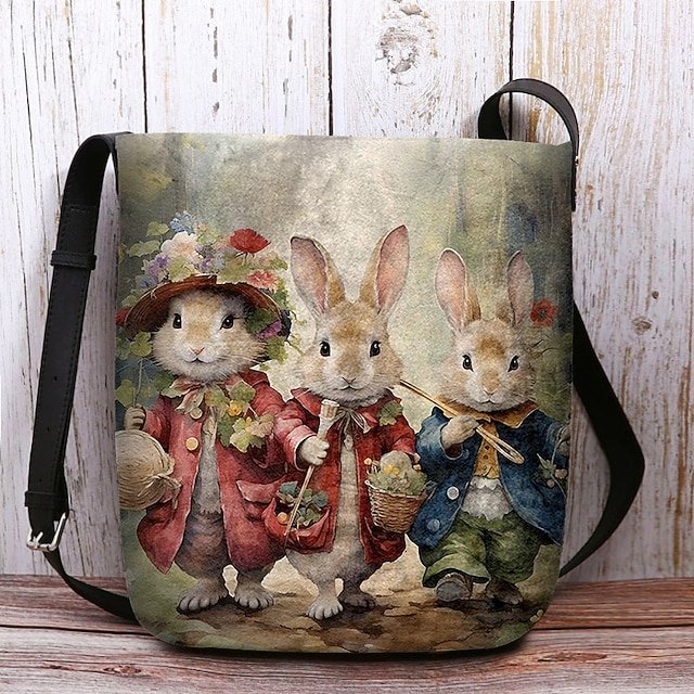 Gender: Women’s, Type: Bucket Bag, Shoulder Bags, Material: Polyester, Embellishment: Print, Pattern: Rabbit, Detachable strap: Non-Detachable, Adjustable strap: Adjustable, Occasion: Easter, Casual Daily, Shopping, Width (cm): 4, Height (cm): 28, Length (cm): 25, Function: Lightweight, Large Capacity, Durable, Category: Crossbody Bag,