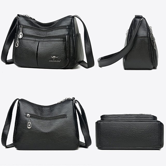 Women’s Faux Leather Crossbody Bag – Multi-Pocket Shoulder