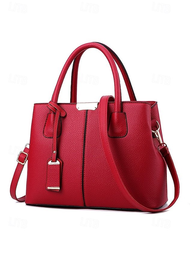 Elegant Women’s Faux Leather Handbag with Red Accents and