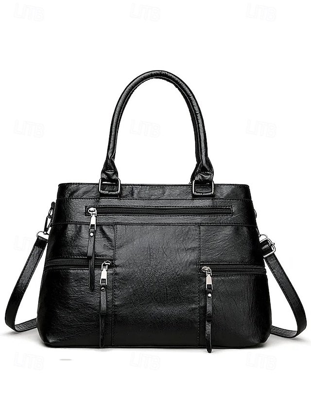 Women’s Large Faux Leather Shoulder Tote Bag with Multiple