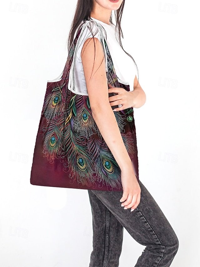 Gender: Women’s, Type: Hobo Bag, Shoulder Bags, Material: Polyester, Embellishment: Print, Pattern: Peacock Feather, Peacock, Detachable strap: Non-Detachable, Adjustable strap: Non-Adjustable, Occasion: Casual Daily, Casual, Shopping, Width (cm): 4, Height (cm): 66, Length (cm): 37, Function: Lightweight, Foldable, Large Capacity, Category: Tote,