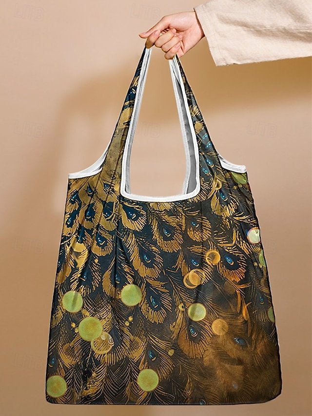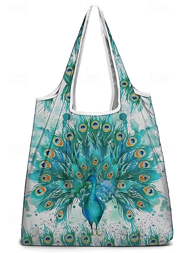 Women’s Peacock Print Folding Tote Bag – Large Capacity