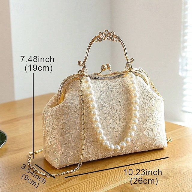Gender: Women’s, Type: Wristlet, Evening Bag, Material: Polyester, Lace, Embellishment: Pearls, Chain, Buckle, Pattern: Solid Color, Detachable strap: Detachable, Adjustable strap: Non-Adjustable, Occasion: Wedding Party, Party, Width (cm): 9, Height (cm): 19, Length (cm): 26, Function: Lightweight, Multi Carry, Category: Clutch,