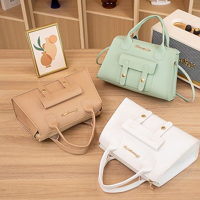 Be the first to review “Women’s White Faux Leather Handbag with Top Handle and” Cancel reply