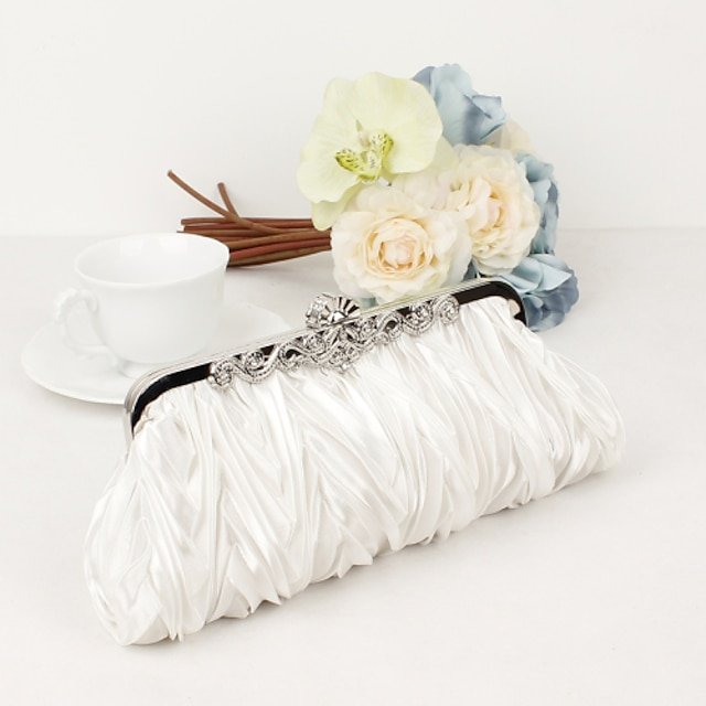 Women’s White Satin Pleated Evening Clutch – Elegant